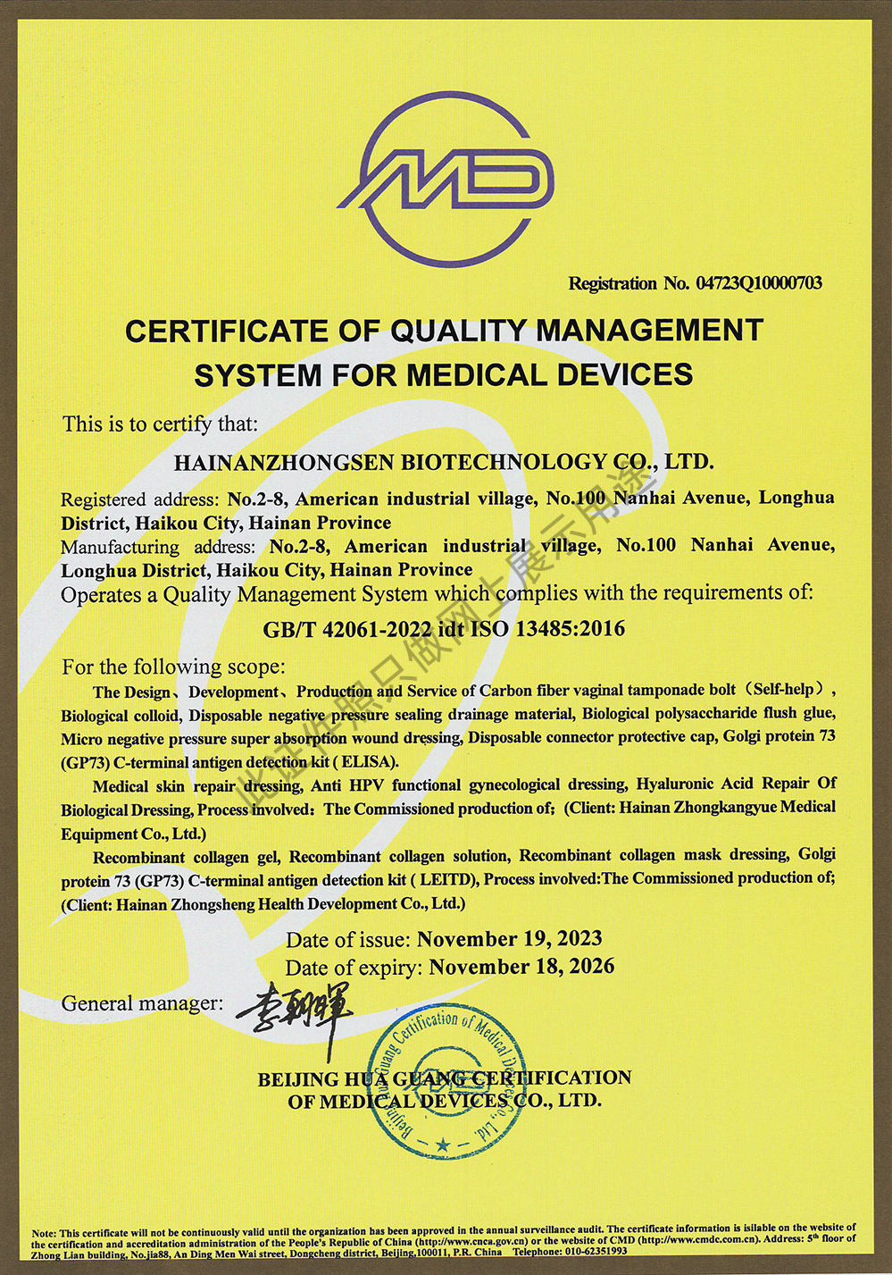 海南眾森生物科技有限公司成立于 2012年8月,位于空氣清新、環(huán)境優(yōu)良的海南省?谑忻绹(guó)工業(yè)村園區(qū),是一家高起點(diǎn)、高標(biāo)準(zhǔn)、高品質(zhì)的現(xiàn)代化新型醫(yī)療器械生產(chǎn)企業(yè),主要從事生物技術(shù)開(kāi)發(fā)、醫(yī)療器械、醫(yī)用衛(wèi)生材料及敷料、醫(yī)用高分子材料及制品、消毒產(chǎn)品等的科研、開(kāi)發(fā)、生產(chǎn)和銷(xiāo)售。